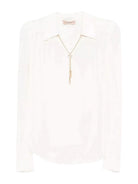 Blusa TWINSET in crêpe de Chine con dettaglio di catena Oval T rimovibile allo scollo.