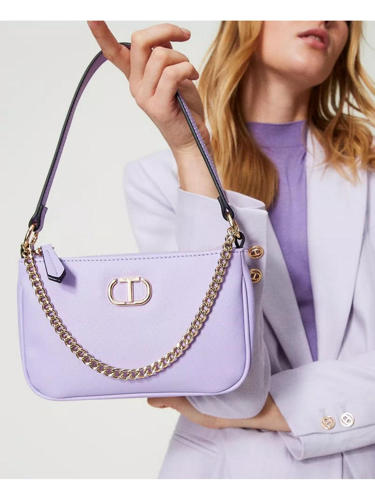 Borsa a tracolla TWINSET effetto pelle con logo Oval T in metallo sul fronte. Doppia tracolla una effetto pelle e una in catena. Chiusura con zip.