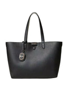 Contiene una pochette con zip e logo, foderata, che può essere usata come busta interna legata alla shopper mediante il moschettone, oppure separatamente come clutch.