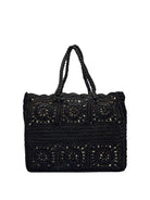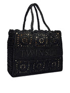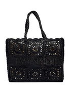 Borsa shopper TWINSET 'Bohémien' in crochet di cotone intrecciato a mano con logo ricamato, borsa a sacchetto interna rimovibile con coulisse.