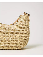 Borsa hobo TWINSET ?Mini Croissant' in paglia intrecciata a mano con logo Oval T in strass crystal di varie forme.