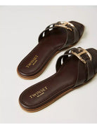 Sandali slide TWINSET in pelle con listini intrecciati