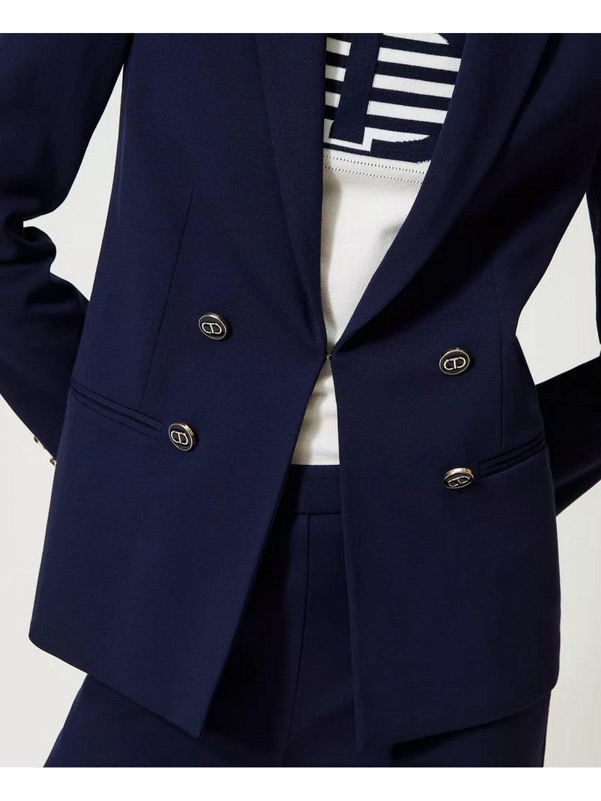 Giacca blazer TWINSET in punto Milano di misto viscosa stretch. Chiusura monopetto con gancio invisibile in metallo e doppia fila di bottoni in metallo con logo Oval T. Revers a lancia e maniche lunghe con bottoni e spacco al fondo. Tasche a doppio filetto, foderata.