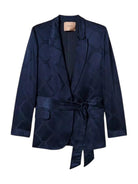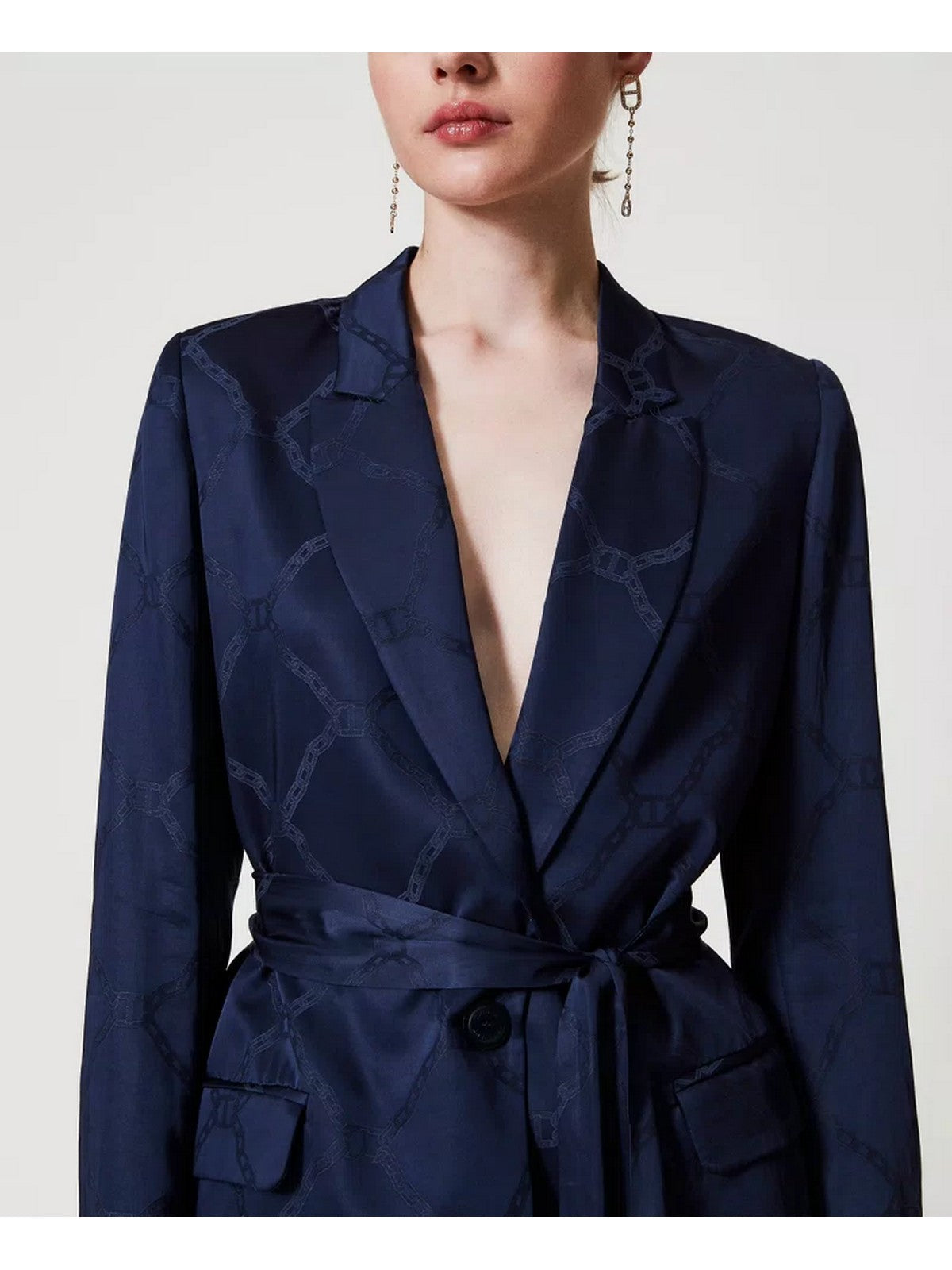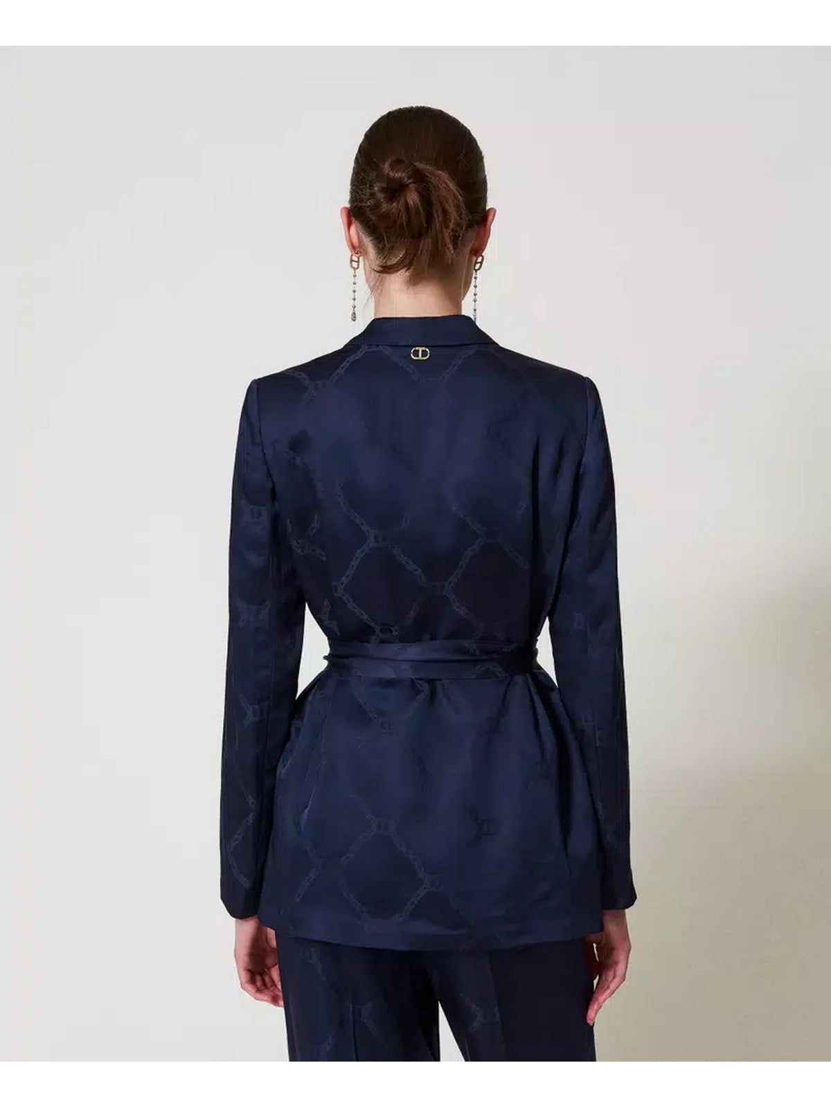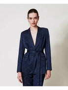 Giacca blazer TWINSET made in Italy in raso jacquard monocolore con grafica Oval T a catena effetto lucido/opaco