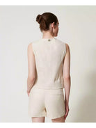 Gilet TWINSET in tessuto a navetta con armatura tela in lino e viscosa, dalla mano fluida.