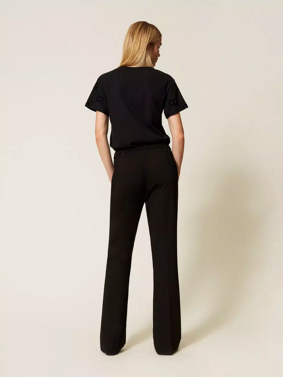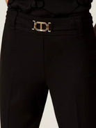 Pantaloni TWINSET in punto Milano di viscosa abbinati a cintura in tessuto con fibbia Oval T in metallo.