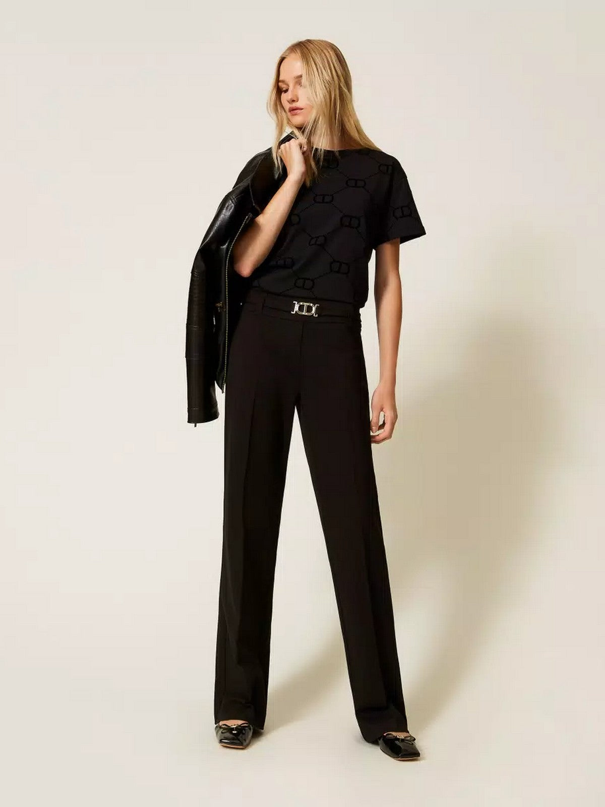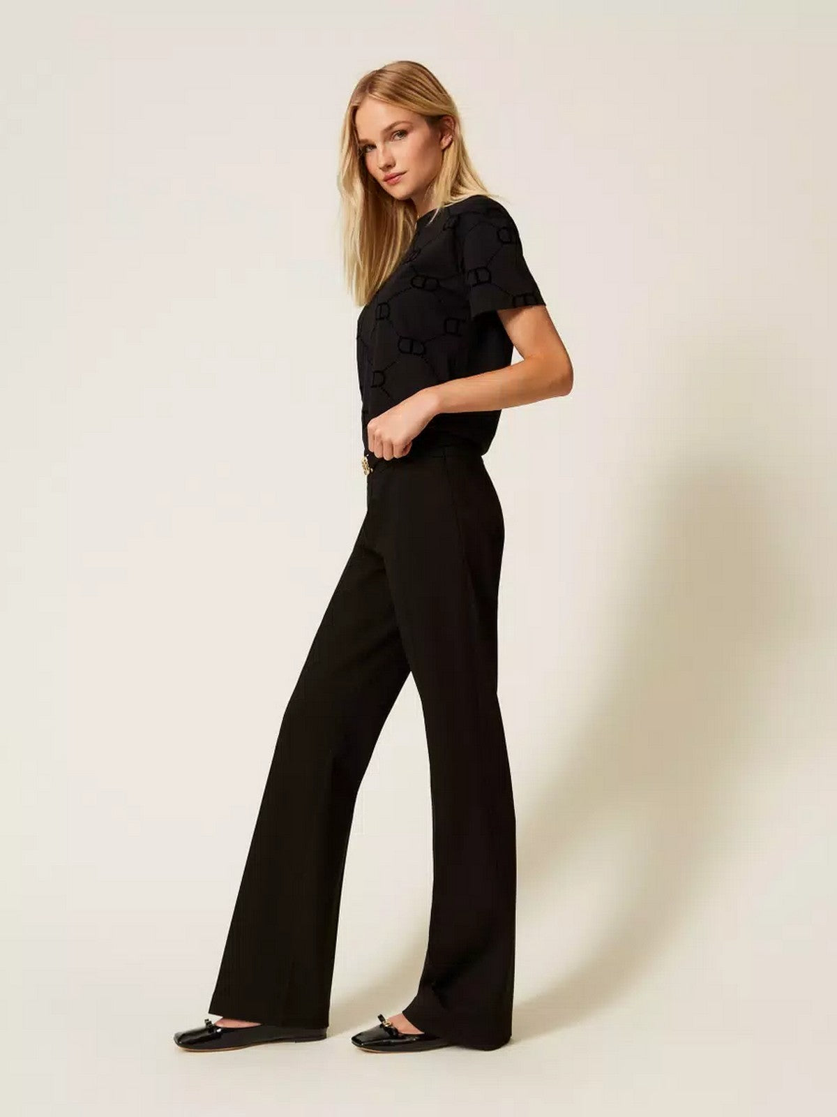 TWINSET Pantalone Donna PUNTO MILANO AND GOLD DETAILS 252TP2602 00006 Nero