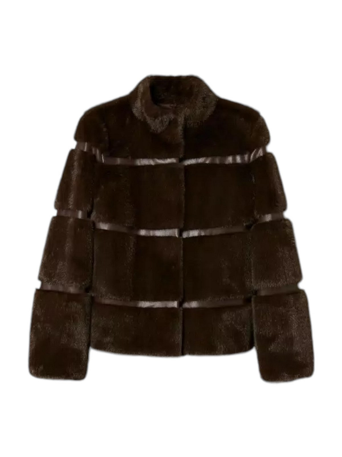 Cappotto corto TWINSET in pelliccia sintetica, Coffee Chocolate.