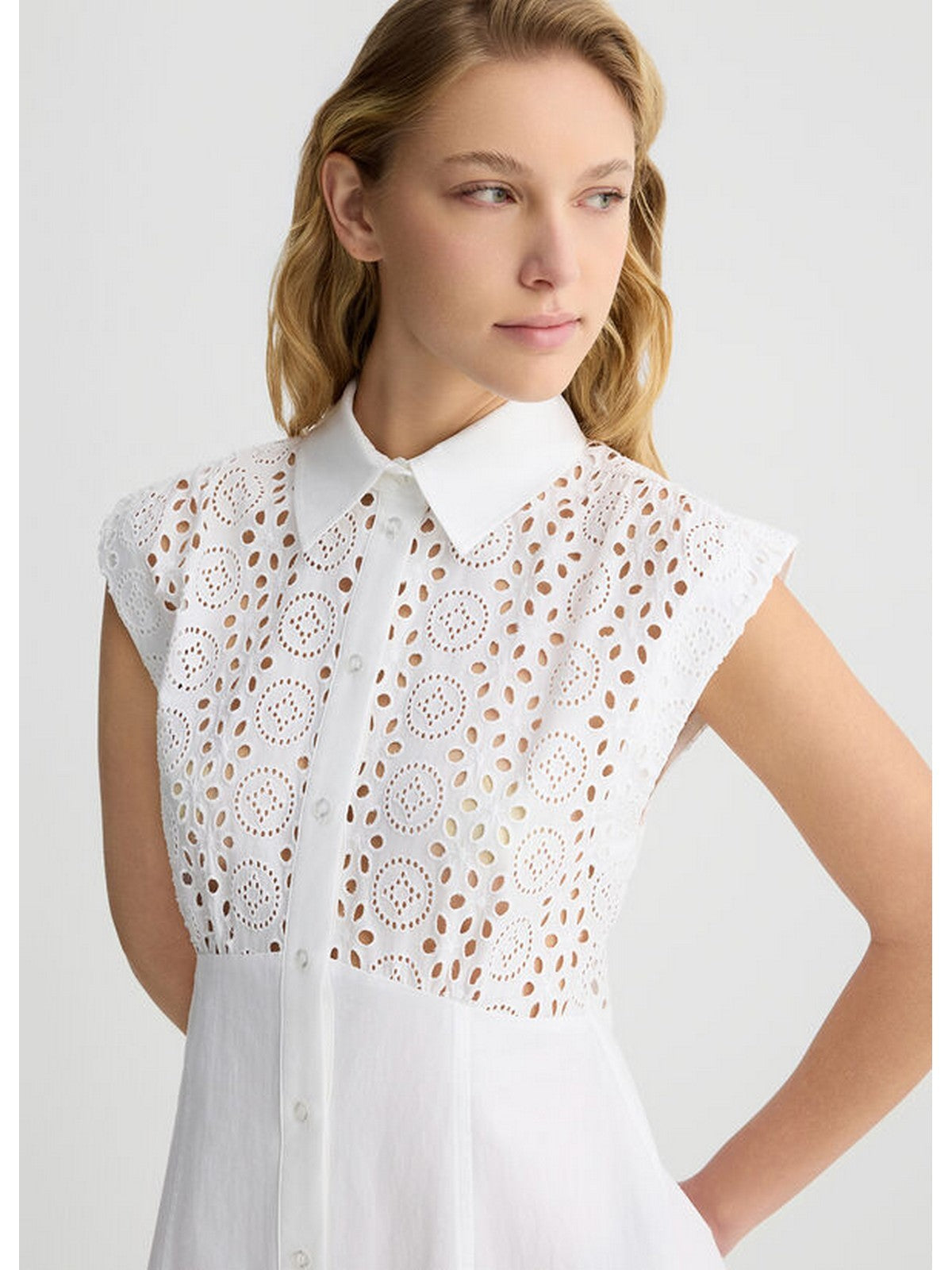 Vestiti casual Donna Liu Jo - Abito chemisier in sangallo - Bianco